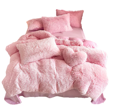 Plush Duvet Cover Set Soft Fluffy Quilt Cover Warm Durable Bedding Set-Pink